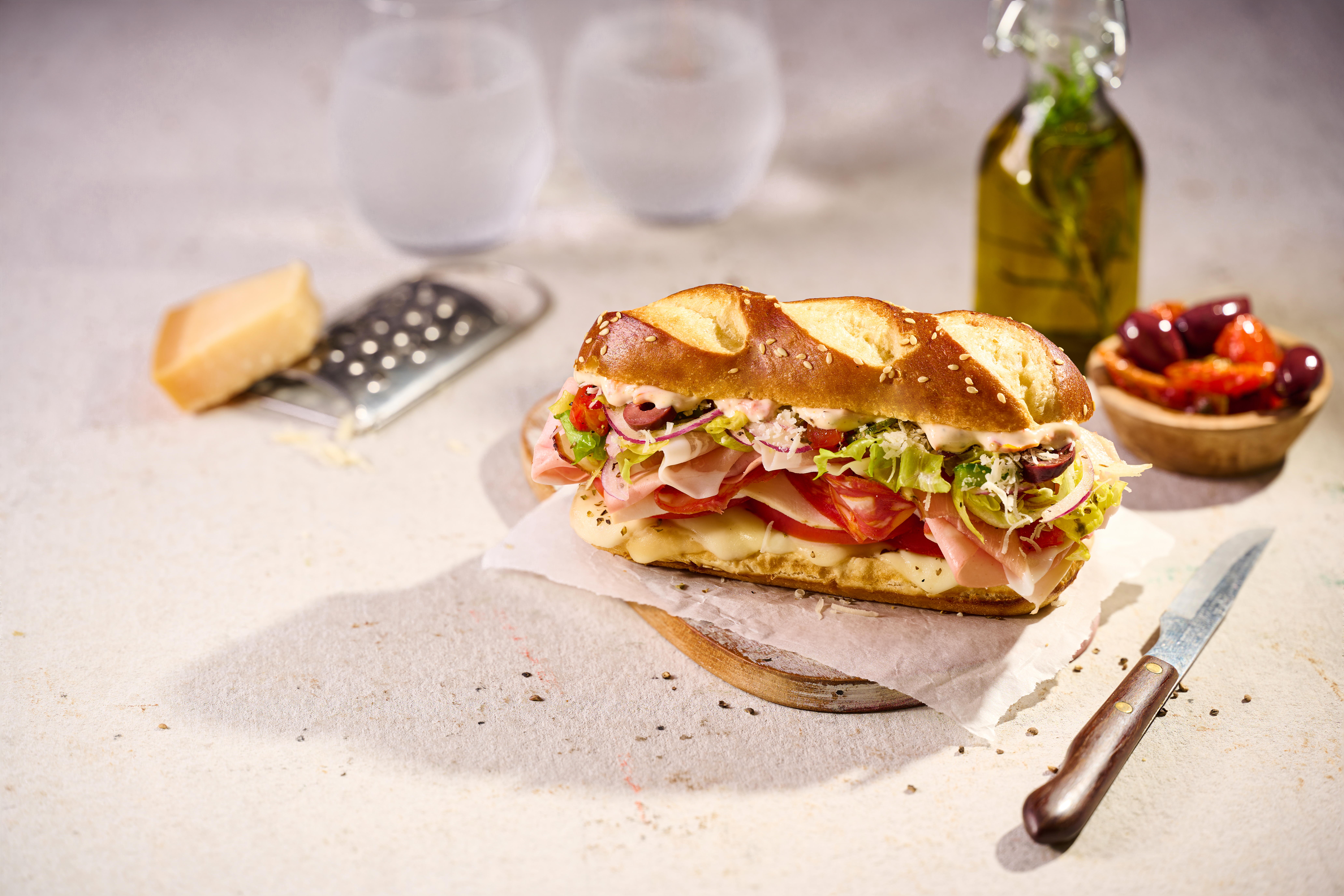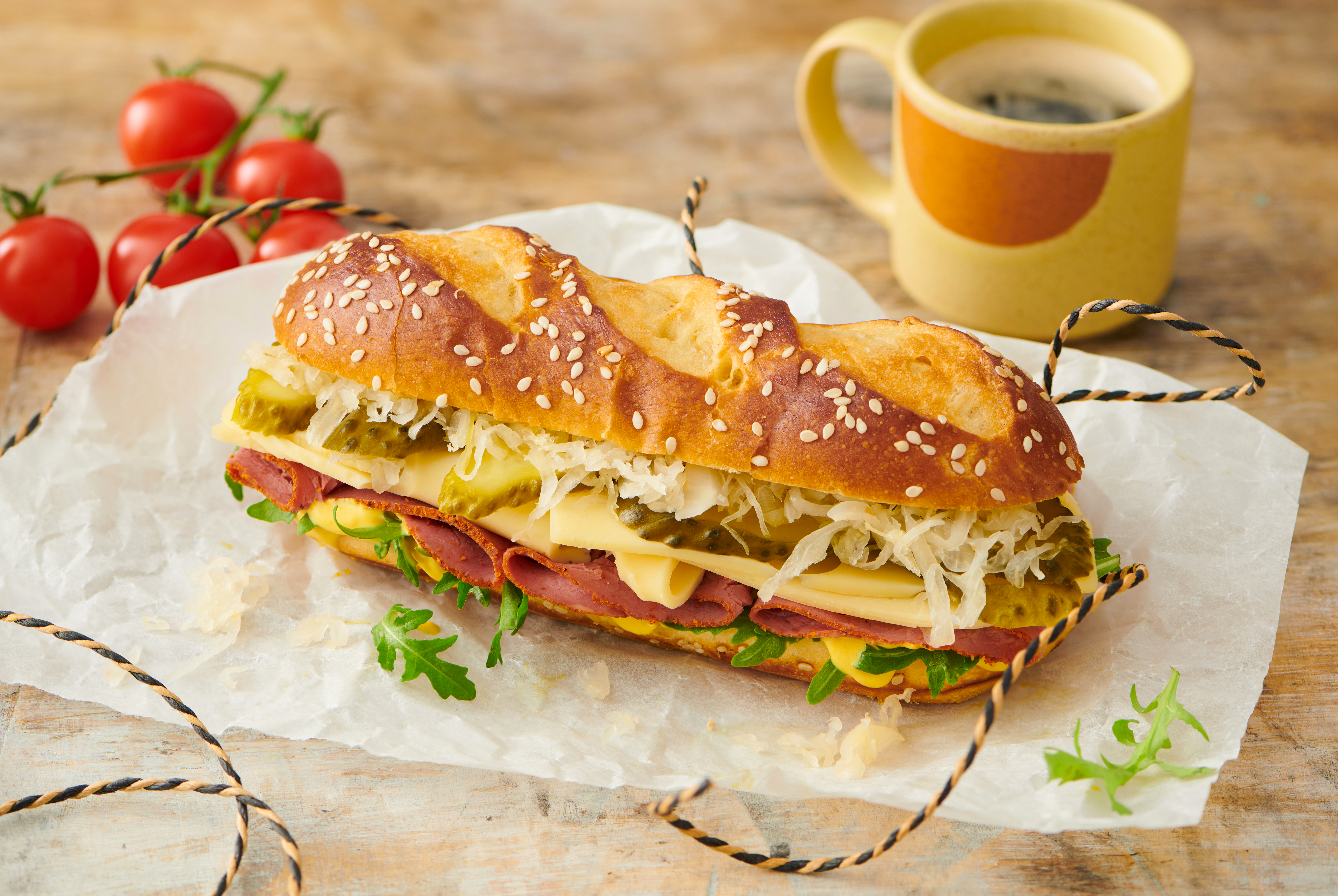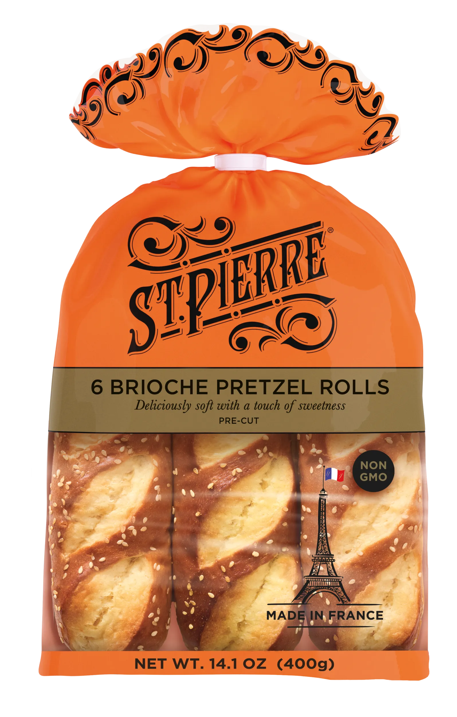 Take your sandwiches to the next level with our delicious, side split, brioche pretzel rolls. Made in France, our soft, golden brioche is topped with sesame seeds for a unique twist on the classic pretzel. Enjoy with sweet or savory recipes to make every sandwich magnifique!
