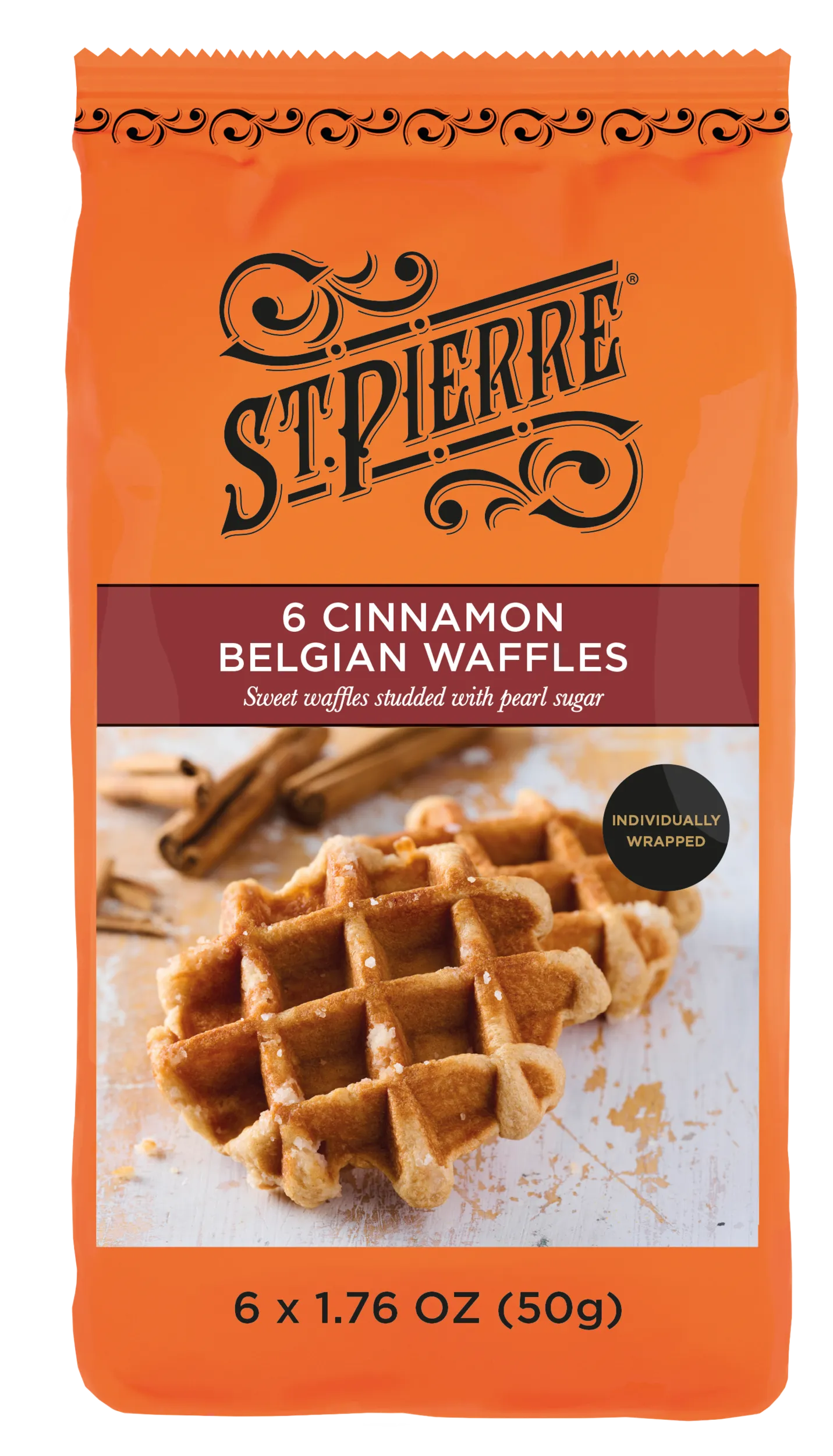 - 6 sweet cinnamon waffles studded with pearl sugar – Individually wrapped